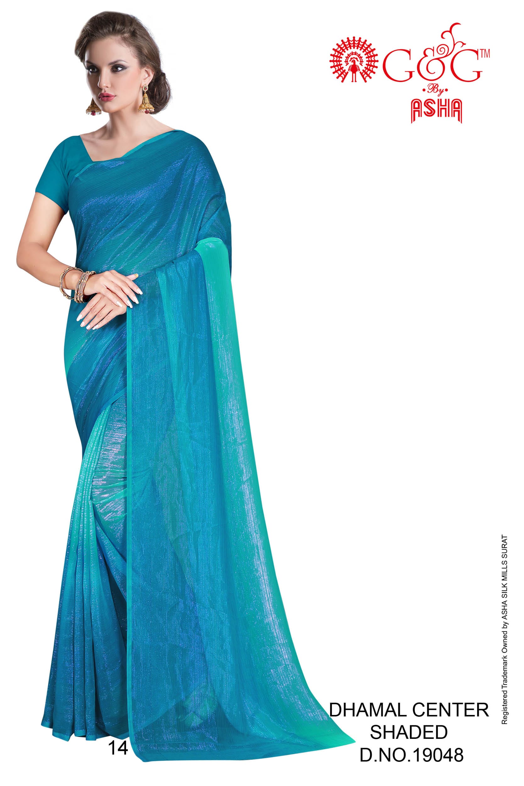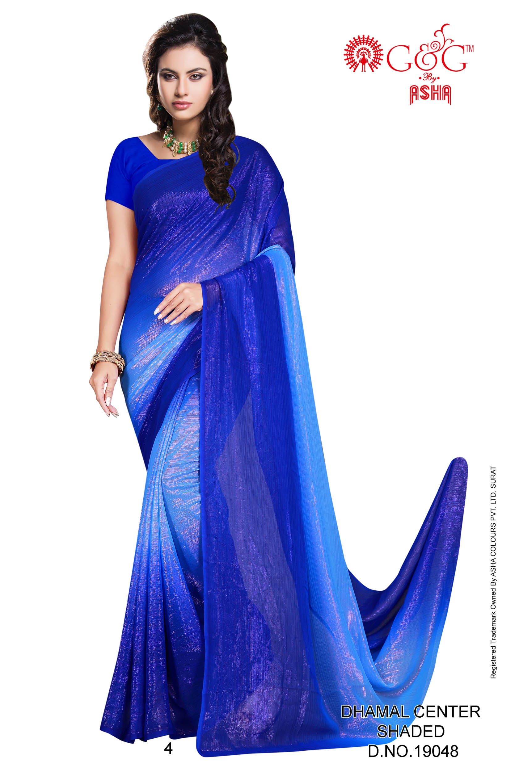 - Details: Full Lurex Center Shaded Saree; Attached with 80 cms blouse-piece