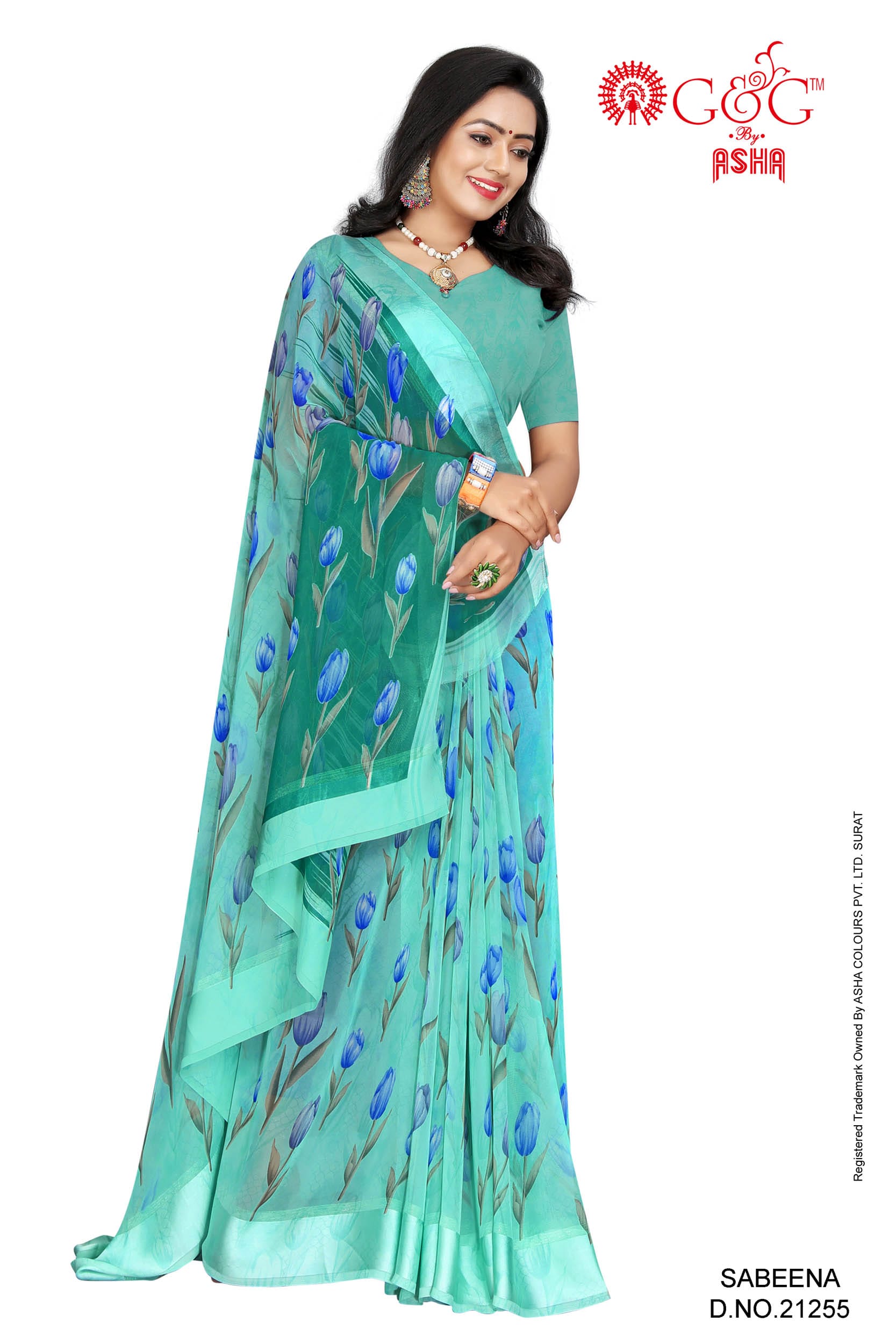 Introducing the Sabeena Georgette Saree, a stunning blend of elegance and comfort. Crafted from 100% polyester, this saree features a luxurious satin finish that adds a touch of sophistication to your wardrobe. The lightweight georgette fabric drapes beautifully, ensuring you look graceful on any occasion. The Sabeena saree is perfect for festive celebrations or evening events, combining traditional charm with modern appeal. Embrace the beauty and versatility of this exquisite piece and make a statement wherever you go.