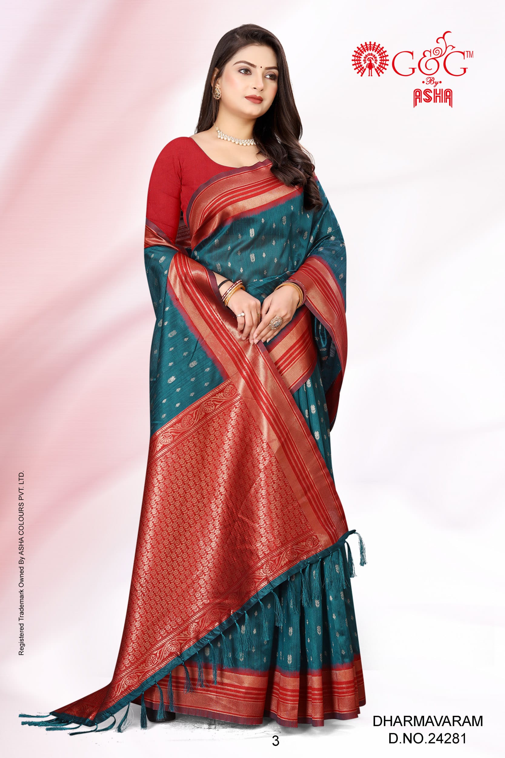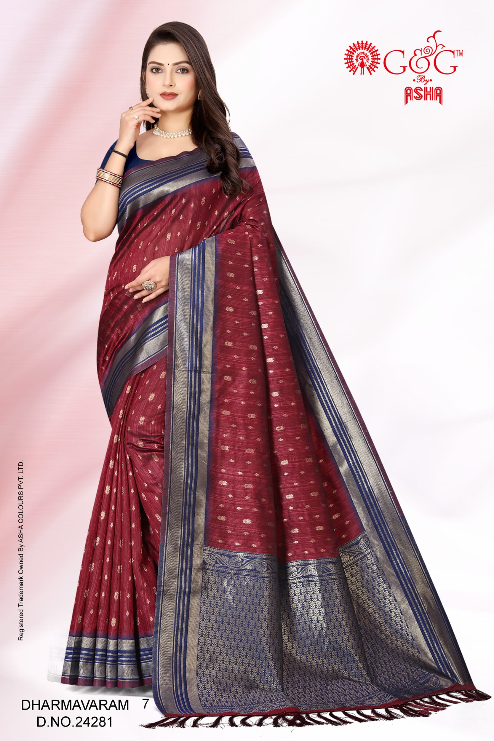 Dharmavaram - 24281 Discover the elegance of our Premium Woven Saree in Handloom Style, crafted from 100% polyester for a luxurious, long-lasting feel. Perfect for weddings, festivals, and special events, it combines traditional charm with modern comfort, ensuring you stand out on every occasion.