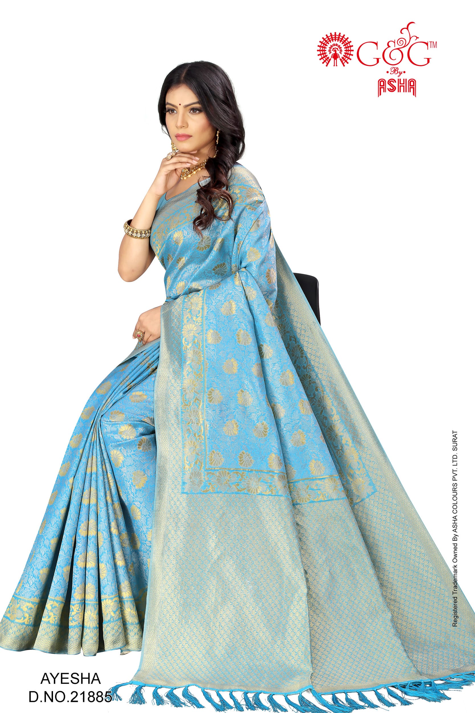 - Details: Premium Woven Saree/Handloom-style; Attached with 80 cms blouse-piece